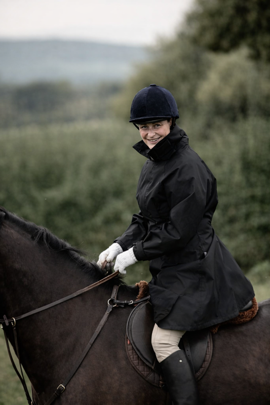 The Ladies Lanacre is a superb variation of the Classic. With a longer cut front, the asymmetric hemline of this coat allows for full waterproof coverage of the upper leg and falls over the cantle of the saddle, without an excess of fabric flapping behind the leg and saddle. The advanced 3-ply outer fabric guarantees maximum waterproof protection, whilst the practical poly/cotton lining enables it to be worn comfortably over a coat for warmth in colder weather. This elegant coat, cut and styled for ladies with a belted waist feature includes all the features of the classic coat.