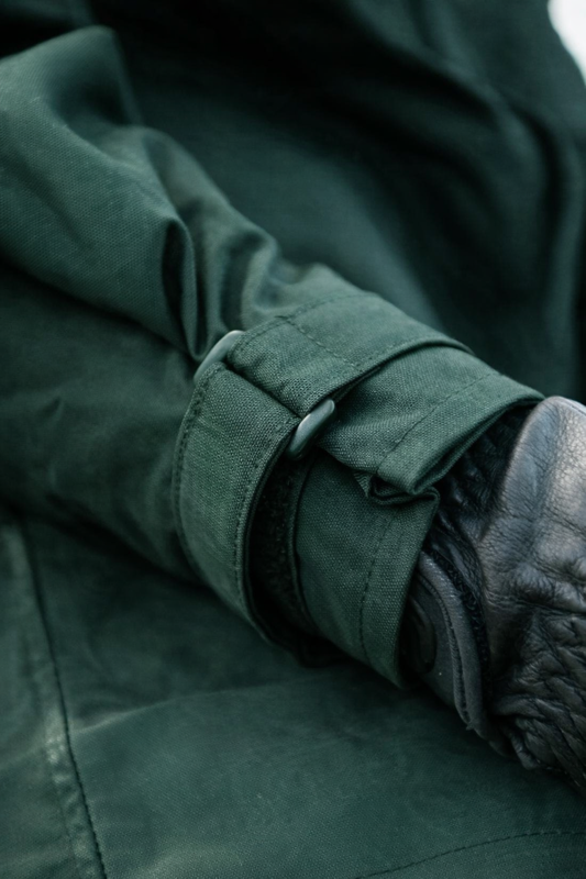 Nice deep pockets and velcro on cuffs. Lovely high collar too and will sit nicely over back of saddle. Very smart too, particularly out hunting in the bad weather. Overall very happy and thanks for the free fleece fingerless gloves which will keep my wrists toasty. Definitely recommend this brand.